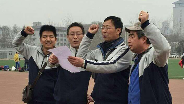 不知有人仔細(xì)看到董事長(zhǎng)(下圖左二)的鞋子了嗎?臨時(shí)抱佛腳,找不到跑步鞋了,用繩子捆著一雙布鞋,這樣跑起來(lái)不會(huì)掉。哈哈,哈哈